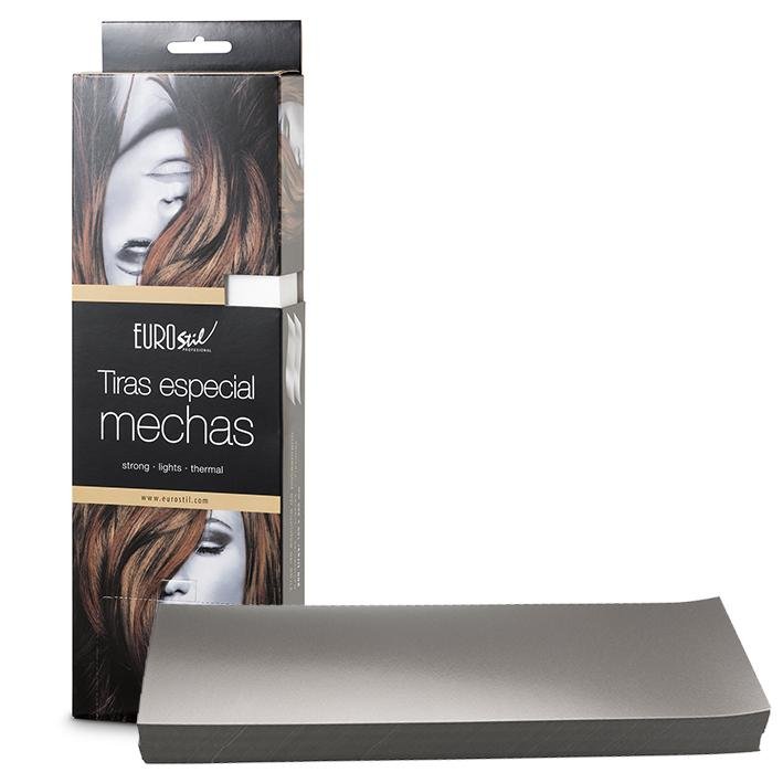 CONSEJOS PRÁCTICOS DE USO: Para el cabello largo, coloque una tira debajo del mechón, aplique el tinte y dóblela uniendo los dos extremos. No es necesario doblar los laterales de las tiras. Las propiedades térmicas de las tiras Eurostil aceleran el proceso de coloración o decoloración. Compruebe el desarrollo regularmente.