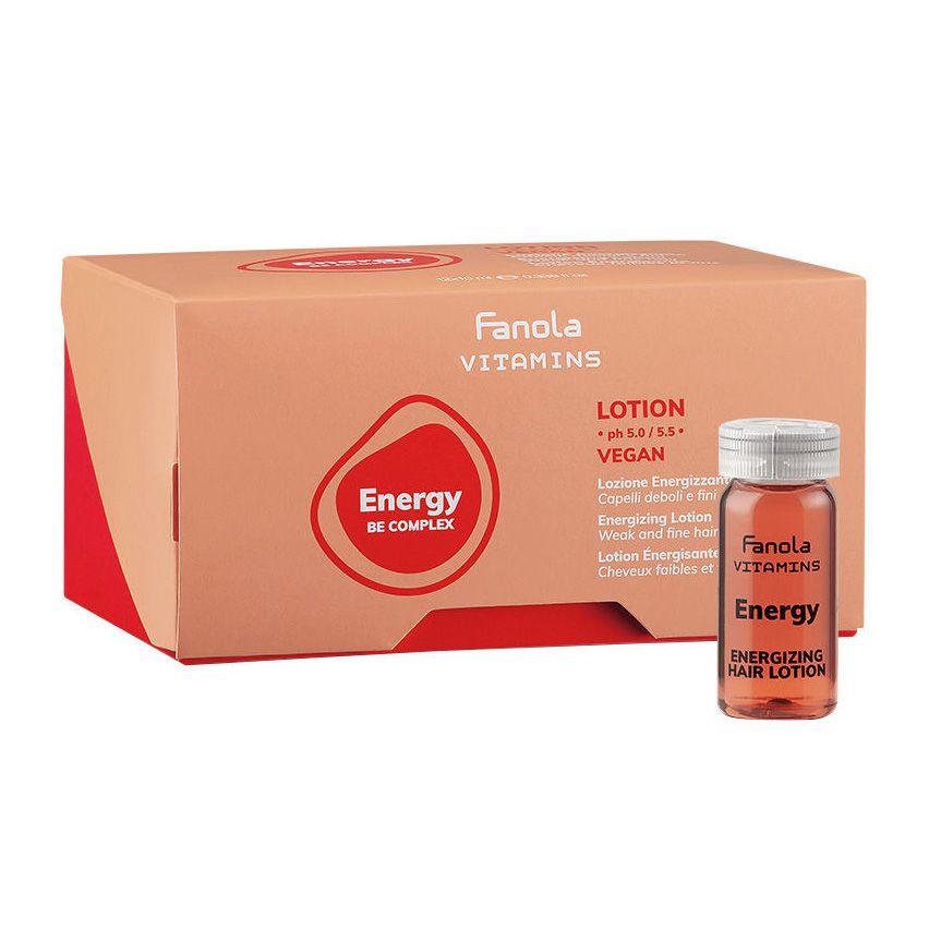 Fanola Vitamins Energy Lotion es un tratamiento capilar especialmente diseñado para combatir la caída del cabello y restaurar su salud y vitalidad. El envase contiene 12 prácticas ampollas de 10 ml fáciles de usar e ideales para el cuidado específico del cuero cabelludo y la raíz del cabello.