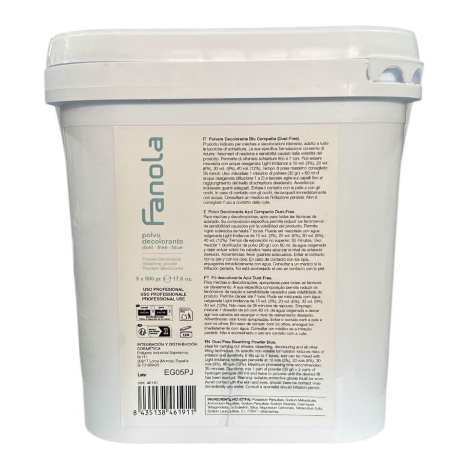 Polvo Decolorante Azul Compacto. Cubo con 6 bolsas de 500mg.