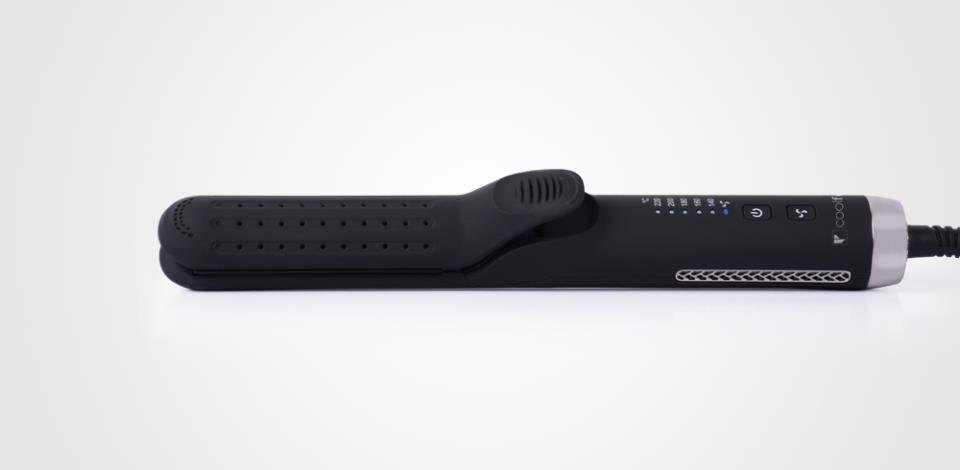 La nueva plancha Cool Fan, se destaca por su novedosa tecnología de aire frío y su función dual para alisar y rizar el cabello. Al activar el botón FAN se libera aire frío que fija el rizo de forma más rápida y lo protege de la exposición al calor. Su forma cilíndrica y sus placas de cerámica ejercen presión y temperatura uniforme de forma constante en todo el cabello. Para que consigas tu mejor look.