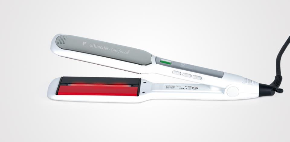 Es una plancha que alisa, riza, seca y repara el cabello gravemente dañado, saneando incluso las puntas. Gracias a la acción combinada de los infrarrojos, la turmalina, la cerámica y el titanium mirror, aporta luminosidad e hidratación al cabello, ofreciendo un acabado y un brillo extraordinario. El tamaño extra de sus placas facilita el trabajo, cubriendo una amplia superficie capilar.