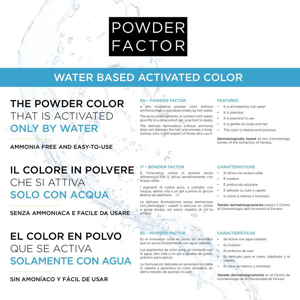Es el innovador color en polvo sin amoníaco que se activa simplemente con agua caliente.