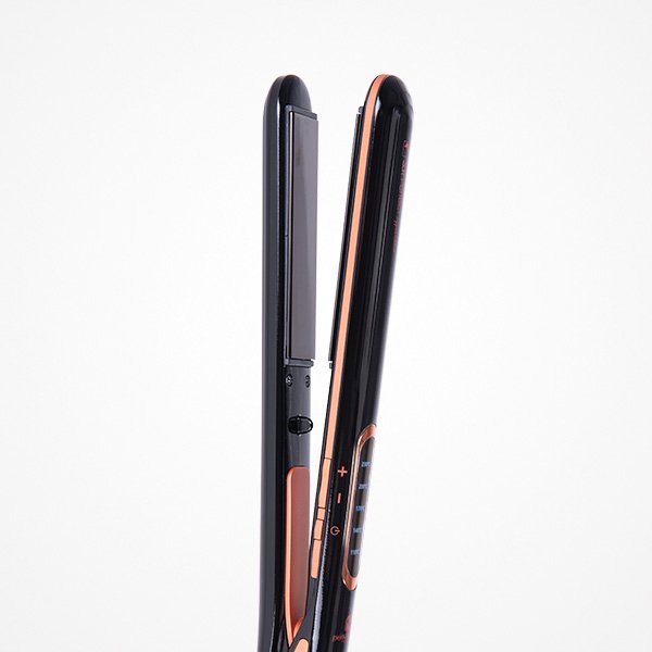 Plancha profesional, con placa de titanio para disciplinar todo tipo de cabello. En tan solo 60 segundos alcanza la temperatura deseada, manteniéndola estable durante todo el proceso. Ideal para realizar cualquier tipo de peinado, garantizando un resultado duradero. Sus 5 niveles de temperatura permiten adaptarse a cualquier tipo de cabello sin dañarlo.
